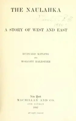 ![]() Title page for The Naulahka: A Story of West and East (1892) | |