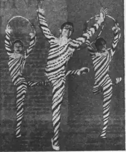 Candy canes dancing in hula hoops in "The Nutcracker"