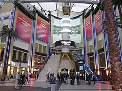 The Entertainment Avenue is a wide pedestrian avenue within The O2, with artificial palm trees and other decorations, built around the circular arena building which takes up the centre of the dome structure. The entertainment avenue has buildings on either side, which are leased to tenants who run bars and restaurants, and resembles a shopping centre.
