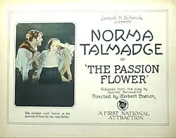 The Passion Flower is a 1921 American drama film starring Norma Talmadge, Courtenay Foote, and Eulalie Jensen, and directed by Herbert Brenon. It is based on the 1913 Spanish play The Unloved Woman (Spanish: La malquerida) by Jacinto Benavente.[2] The play was translated into English by John Garrett Underhill as The Passion Flower and successfully produced in 1920 in New York City.[3] The plot of the film involves the forbidden love of a man for his stepdaughter which leads to tragedy and murder.