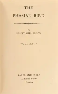 The Phasian Bird is a 1948 novel by the English writer Henry Williamson.