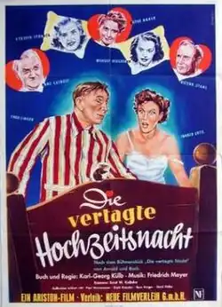 The Postponed Wedding Night (German: Die vertagte Hochzeitsnacht) is a 1953 West German comedy film directed by Karl Georg Külb and starring Margot Hielscher, Theo Lingen and Viktor Staal. It was based on a play by Franz Arnold and Ernst Bach.[1] It was shot at the Carlton Studios in Munich. The film's sets were designed by the art directors Willi Schatz and Arne Flekstad.