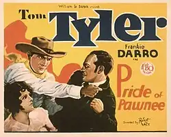 The Pride of Pawnee is a 1929 American silent Western film directed by Robert De Lacey and starring Tom Tyler, Ethlyne Clair and Barney Furey.[1]