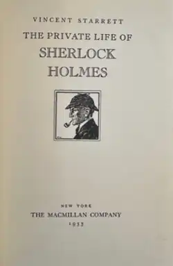 The Private Life of Sherlock Holmes is a book by Vincent Starrett originally published in 1933.[1] It is considered the first book on Sherlock Holmes scholarship,[1][2] as well as a cornerstone of the study of Sherlockiana.[1][3][4] It has been credited with jumpstarting the creation of Sherlockian Societies.[5] It has been used as an inspiration and a reference for "biographies" of Sherlock Holmes such as Nick Rennison's 2005 Sherlock Holmes: The Unauthorized Biography.[6]