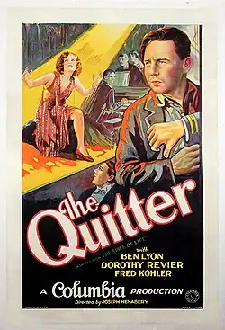 The Quitter is a 1929 silent film from Columbia Pictures directed by Joseph Henabery starring Ben Lyon, Dorothy Revier and Fred Kohler.