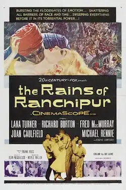 The Rains of Ranchipur is a 1955 American drama and disaster film made by 20th Century Fox. It was directed by Jean Negulesco and produced by Frank Ross from a screenplay by Merle Miller, based on the 1937 novel The Rains Came by Louis Bromfield. The music score was by Hugo Friedhofer and the cinematography by Milton Krasner.