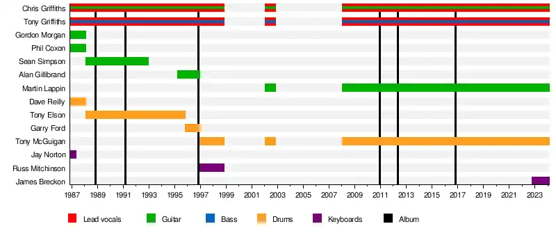 - Chris Griffiths – guitars, lead vocals (1986–1998, 2002, 2008–present)
