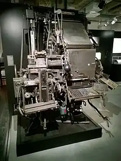 - ^ The linotype machine, invented in 1886, is a "line casting" machine used in printing. Along with letterpress printing, linotype was the industry standard for newspapers, magazines and posters from the late 19th century to the 1960s and '70s, when it was largely replaced by offset lithography printing and computer typesetting.[4]
