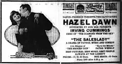 The Saleslady is a 1916 American drama silent film directed by Frederick A. Thomson and written by Willard Mack. The film stars Hazel Dawn, Irving Cummings, Dorothy Rogers, Clarence Handyside and Arthur Morrison. The film was released on March 23, 1916, by Paramount Pictures.[1][2]