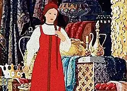 The Scarlet Flower (Russian: А́ленький цвето́чек, Álenkiy tsvetóchek) is a 1952 Soviet feature animated film directed by Lev Atamanov. It was produced at the Soyuzmultfilm studio in Moscow and is based on the story of the same name by Sergey Aksakov. Nastenka's song "During this time in a darling party"/"В эту пору в родимой сторонушке" was sung by the famous chamber singer Victoria Ivanova.