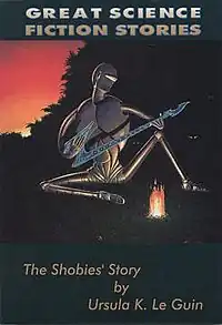 "The Shobies' Story" is a 1990 science fiction novella by American writer Ursula K. Le Guin, describing the story of the first human crew to participate in a newly invented faster-than-light mode of space travel. It was first published in the anthology Universe 1 and subsequently appeared in A Fisherman of the Inland Sea published by Harper Prism in 1994.