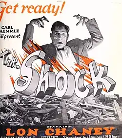 The Shock is a 1923 American silent drama film (a Universal Jewel) directed by Lambert Hillyer and starring Lon Chaney as a disabled man named Wilse Dilling.[1] The film was written by Arthur Statter and Charles Kenyon, based on a magazine story by William Dudley Pelley. This is one of the rare Lon Chaney films in which his character ends up with the female "love interest." The film is readily available on DVD.[2]