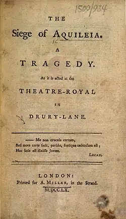 The Siege of Aquileia is a five-act verse tragedy by the Scottish writer John Home.[1] Set during the Year of the Six Emperors (238), it dramatises the difficult choice between domestic loyalties and honourable conduct in the public sphere.