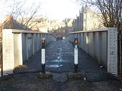 The Crawford Bridge (named after a city councillor) is a footbridge over a now rarely used railway line. It appears several times in the first half of the film. It points directly to Norton Park School which can be seen in the distance.