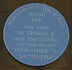 Blue plaque on Wood End in Scarborough, one of the family homes of the Sitwells