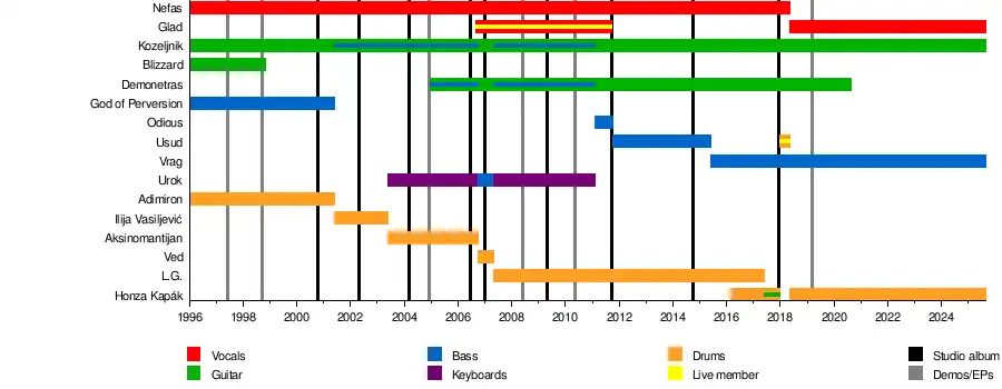 - Nefas – vocals (1996–2006, 2011–2018), vocals (only studio) (2006–2011)