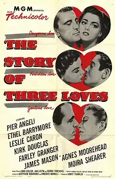 The Story of Three Loves (also known as Equilibrium) is a 1953 American Technicolor romantic anthology film made by MGM. It consists of three stories, "The Jealous Lover", "Mademoiselle", and "Equilibrium". The film was produced by Sidney Franklin. "Mademoiselle" was directed by Vincente Minnelli, while Gottfried Reinhardt directed the other two segments. The screenplays were written by John Collier ("The Jealous Lover", "Equilibrium"), Jan Lustig ("Equilibrium", "Mademoiselle"), and George Froeschel ("Equilibrium", "Mademoiselle").
