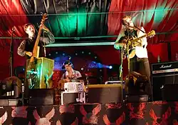 The trio employ a knocked-together aesthetic and play live rag'n'bone music to frame their self-coined "junkyard theatre".[2]