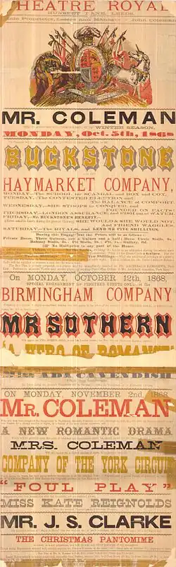 Encouraged by the new railways which gave opportunity for a northern theatre circuit, the actor John Coleman bought the theatre in 1863. It was successful until 1864, when the new Amphitheatre was built in Lands Lane.[5] Coleman responded by refurbishing the interior. It was successful, but not enough for Coleman, who attempted and failed to purchase land to build another city-centre theatre.[1][3][6]