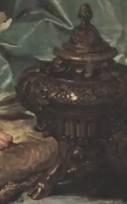 Enlarged image of the painting's cassolette and its pieds de bieche