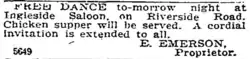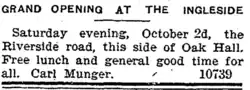 In 1897, a notice in the Sacramento Bee announced a "grand opening" of "the Ingleside" under management by Carl Munger.[4] By 1900, the business was operating as the Ingleside Saloon under management by E. Emerson.[7]