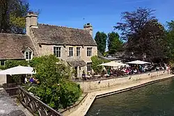 The Trout Inn is a Grade II listed building built principally in the 17th century, with some 18th-century alterations and additions.[1] Godstow Bridge, to the south of the inn, consists of two stone arches across the Thames, the northern one dating from medieval times, and the southern rebuilt in 1892. Both bridges are also Grade II listed,[2][3] as is the wooden footbridge at the Trout Inn.[4]