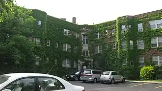 The Varsity is a historic apartment building located at West Lafayette, Tippecanoe County, Indiana. It was built in 1928, and is a three-story, L-shaped, Tudor Revival style brick building. It has a limestone quoins and detailing, a Tudor-arched entrance, projecting pavilions, and semi-hexagonal projecting bays.[2]: 5–6