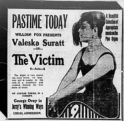 The Victim is a 1916 American silent drama film that was written and directed by Will S. Davis. The film starred Valeska Suratt and Herbert Heyes, and was distributed by Fox Film Corporation.[1] All prints are believed to be lost.[2]