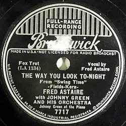 "The Way You Look To-night" is a song from the film Swing Time that was performed by Fred Astaire and composed by Jerome Kern with lyrics written by Dorothy Fields. It won the Academy Award for Best Original Song in 1936.[5][6] Fields remarked, "The first time Jerry played that melody for me I went out and started to cry. The release absolutely killed me. I couldn't stop, it was so beautiful."[7]