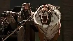 Two days later, Carol is fully conscious, though still weak, and is taken by Morgan to meet King Ezekiel (Khary Payton), the leader of the Kingdom, and his pet Bengal tiger, Shiva. Carol is taken aback by Ezekiel's over-the-top manner, but feigns approval of his hospitality and politely rejects his offer of fruit, stating that pomegranates are not to her liking. Later, Carol confides in Morgan that she is going to leave at the first opportunity.