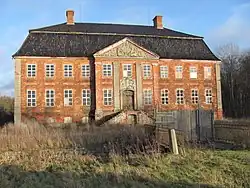 Filming took place between 9 June and 4 September 2008. Locations were used in Leipzig, Lübeck, Michaelisbruch (Dreetz) and Netzow (Plattenburg)[11] and Dassow (Schloss Johannstorf).[12] The choice to make the film in black and white was based partly on the resemblance to photographs of the era, but also to create a distancing effect.[6] All scenes were originally shot in color and then altered to black and white. Christian Berger, Haneke's usual director of photography, shot the film in Super 35 using a Moviecam Compact. Before filming started, Berger studied the black-and-white films Ingmar Bergman made with Sven Nykvist as cinematographer. Haneke wanted the environments to be very dark, so many indoor scenes used only practical light sources such as oil lamps and candles. In some of the darkest scenes, where the crew had been forced to add artificial lighting, extra shadows could be removed in the digital post-production which allowed for extensive retouching.[13] The team in Vienna also sharpened objects and facial expressions, and modern details were removed from the images. In the dance scene, where the camera moves in 360 degrees, tiles were added frame by frame to replace the original Eternit roofs.[10] Critic Christian Buß suggested references in the name of the fictitious village, "Eichwald", to the Nazi Obersturmbannführer Adolf Eichmann and the Buchenwald concentration camp.[14] Eichwald is, however, a common German place name, meaning "Oak Forest".