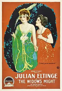 The Widow's Might is a 1918 American silent Comedy film directed by William C. deMille and written by Marion Fairfax. The film stars Julian Eltinge, Florence Vidor, Gustav von Seyffertitz, Mayme Kelso, James Neill, and Larry Steers. The film was released on January 28, 1918, by Paramount Pictures.[1][2]