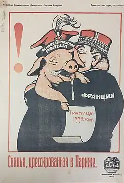 Throughout history, Communist governments have used poster art as a common form of propaganda used to promote the ideology of communism, namely the Soviet Union in the early 20th Century. The Great Soviet Encyclopedia defines communist propaganda as being the expression of the essential worldview of the working class and its natural aims and interests defined by its historical position as the social force which will ultimately usher in the epoch of communism.[15]