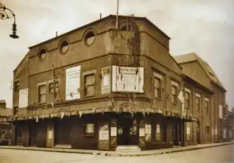 In 1922 the actor and singer Martyn Green appeared here in a tour of Shuffle Along immediately before joining the D'Oyly Carte Opera Company.[15] From 1925 to 1926 the theatre was owned by local businessman W. A. 'Willie' Rubick (1869-1926)[16] on whose death the theatre transferred to his widow who sold it in 1928.[17] During the 1930s the theatre was owned by Town & Country Theatres who also owned the Duchess Theatre in London. The actor James Mason is believed to have made his stage début here in 1931 in The Rascal.[1] However, some sources claim this was at the nearby Hippodrome Theatre.[18] The Theatre Royal went bankrupt in the 1930s and was reopened as a Variety Theatre by Ben Garcia in 1940 who managed it during World War II. Aldershot being a Garrison Town, much of the audience at this time was male leading to a number of nude revues being held at the theatre. Other acts at this time included Tod Slaughter in the melodrama Jack the Ripper, Billy Reid and his accordion band with Dorothy Squires as his vocalist, and Phyllis Dixey in her revue Peek A Boo.[6]