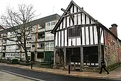 The site of the Theatre Royal is now occupied by modern flats (left), next to the Medieval Merchant's House (right).