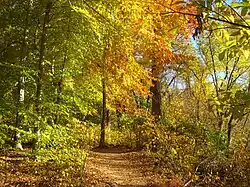 Theodore Roosevelt Island is an 88.5-acre (358,000 m2) island and national memorial located in the Potomac River in Washington, D.C.[2][3] During the Civil War, it was used as a training camp for the United States Colored Troops. The island was given to the federal government by the Theodore Roosevelt Association in memory of the 26th president, Theodore Roosevelt. Until then, the island had been known as My Lord's Island, Barbadoes Island, Mason's Island, Analostan Island, and Anacostine Island.[4]
