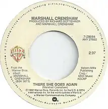In the United States, "There She Goes Again" was released as the second single from Crenshaw's debut album in September 1982. The B-side of the American single was "The Usual Thing," another song from the Marshall Crenshaw album. The single reached number 10 on the Billboard Bubbling Under charts in the US,[2][3] becoming a radio hit on college circuits.[4] The song has also appeared on the compilation album This Is Easy: The Best of Marshall Crenshaw.
