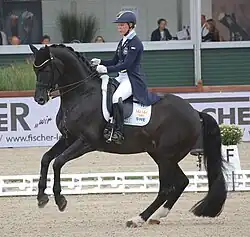Therese Nilshagen (born 24 January 1983) is a Swedish dressage rider. At the European Championships in Gothenburg 2017, she won team silver and at the Rotterdam 2019, she won team bronze, both with the black stallion Dante Weltino OLD. In 2016 she was selected for the 2016 Olympic Games in Rio de Janeiro, but during the vet-check, the horse was not fit, so she was replaced by fellow team rider Mads Hendeliowitz.[1]