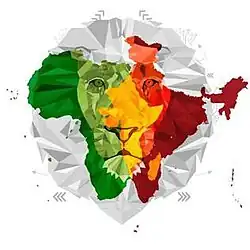 The logo depicts a lion with one half of an African lion and another half of an Indian lion. The official website mentioned about the logo: "Proud, Courageous, Bold and on the Prowl, ready to take on the future and seize every opportunity". In the background African map overlapping merges with Indian map in a reference to ancient Gondwanaland when Indian subcontinent used to be part of today's Africa's continental landmass millions of years ago.[6] The India Gate, one of the iconic landmark of Delhi, the host city will be illuminated with 3D laser projection showing India-Africa shared heritage and India's contribution in African peace and prosperity, throughout the summit week.[7]