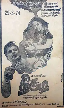 Thirudi (transl. Lady thief) is a 1974 Indian Tamil-language film written and directed by Madurai Thirumaran, from a story by Mahendran.[2] The film stars Jaishankar as a pathological liar and K. R. Vijaya as the titular thief. It was released on 29 March 1974,[3] and became a success.[4]