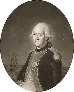 In December 1776, Philippe Charles Tronson de Coudray and a group of French officers left for America on the Amphitrite. The ship was soon forced to turn back to France.[2] Anxious to get on with their journey, Lieutenant du Plessis and Philippe Hubert Preudhomme de Borre went aboard the Mercure. Du Plessis paid 400 livres for the price of his passage. Carrying a secret cargo of military supplies, the vessel left Saint-Nazaire on 5 February 1777.[3] The Mercure reached Portsmouth, New Hampshire on 17 March and de Borre arrived at Morristown, New Jersey exactly two months later.[2] Appointed captain of artillery in the Continental Army, du Plessis' commission dated from 15 April 1777. He fought at the Battle of Brandywine on 11 September.[4]