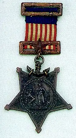 For heroic conduct, with two comrades, in rescuing from drowning James Rose and John Russell, seamen, of the U.S.S. Winooski, of Eastport, Maine, 10 May 1866.[1]