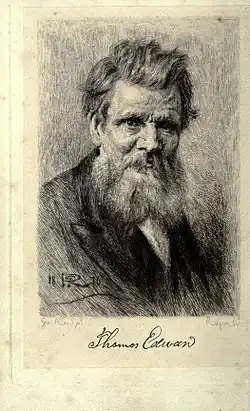 Thomas Edward (1814–1886) was a Scottish naturalist born in Gosport. He was trained as a shoemaker and eventually settled in Banff, where he devoted his leisure time to the study of animal nature, and collected numerous specimens of animals, which he stuffed and exhibited, but with monetary loss. Samuel Smiles, his biographer, describes him as "one of those men who lived for science, not by science."[1]