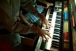 - Repeat Percussion - Playable from either manual, Repeat Percussion emulated the sound of percussive instruments such as a marimba or banjo. The repeat rate was easily adjusted via a thumbwheel on most models and rotary control on smaller models such as the AR1