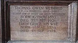Thomas Owen Wethered - Memorial in All Saints Church, Marlow, England in Family Chapel