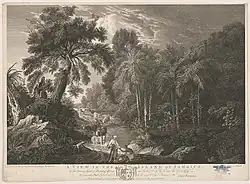 In 1750, a 29-year-old Thistlewood arrived in Jamaica with very few possessions but was immediately sought after as a plantation overseer, and by 1757 his wages had risen to £100 a year. A year later, that was increased to £120 a year.[22] This was an enormous sum compared to the average wages of white Europeans living in the Americas. Such wages allowed him to purchase slaves and hire them out. He could have continued to make more money working for others, but in the mid-1760s he decided to become an independent landowner, not as a rich sugar producer but as a modestly well-to-do market gardener and horticultural expert for Jamaica's western end. He acquired local respectability, often dining with his parish's wealthiest planters, and served in several local offices, including justice of the peace. After one lavish meal in 1778, Thistlewood and his fellow planters played cricket.[23]
