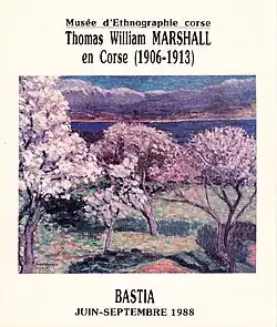 Wealthier than many of the contemporary artists of his time, he did not really need to sell much of his art to live;[5] as a result, he remained relatively unknown until his rediscovery by art critic Yann Le Pichon in 1984. One of Thomas William Marshall's paintings, a landscape of Corsica painted in 1910, was selected by a specialized jury and art lovers, displayed at the Espace Pierre Cardin at the Champs-Élysées and was reproduced in colour in an edition of the magazine Paris-Match in December 1984.[12]