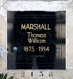 In 1910, Thomas William Marshall married Marie-Louise Désagullier[10] who had been his companion and model for many years. He died prematurely from tuberculosis[11] on (1914-09-02)September 2, 1914 in Paris, at the age of 38, at the height of his talent. He was cremated at cimetière du Père-Lachaise and his ashes are resting at the columbarium (87th division, niche n° 2137).