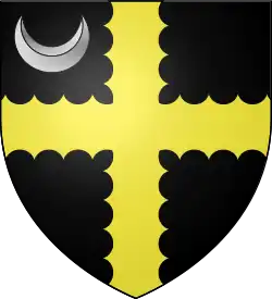 Arms of Thomas de Ufford: Sable a cross engrailled or, in dexter chief a crescent argent, as shown in the Gelre Roll.