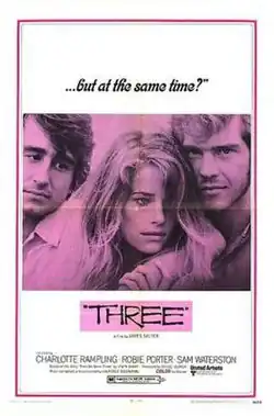 Three is a 1969 British drama film written and directed by James Salter. The film stars Charlotte Rampling, Robie Porter, Sam Waterston, Pascale Roberts, Edina Ronay and Gillian Hills. The film was released on 23 December 1969, by United Artists.[1][2][3][4]